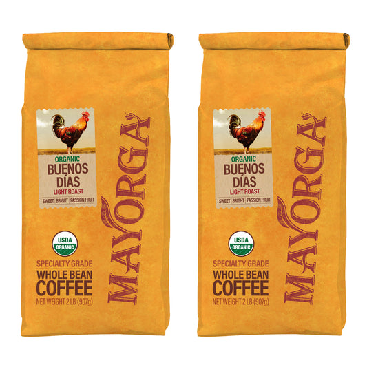 Mayorga Buenos Días, USDA Organic, Light Roast, Whole Bean Coffee, 2lb, 2-pack