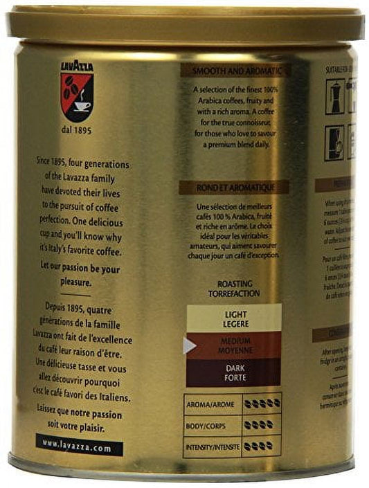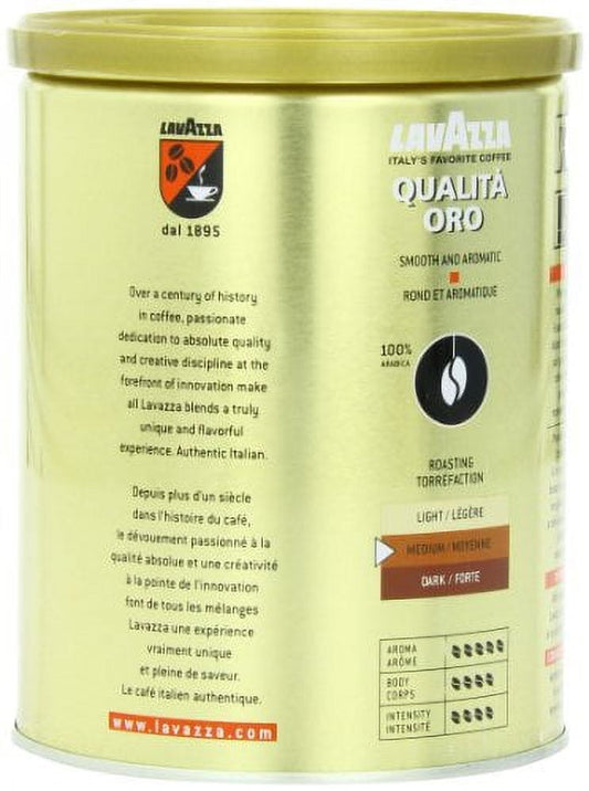 Lavazza Qualita Oro Ground Coffee Blend, Medium Roast, Authentic Italian, Blended And Roasted in Italy, Non GMO, A Full bodied with sweet, aromatic flavor, 8.8 Oz (Pack of 4)