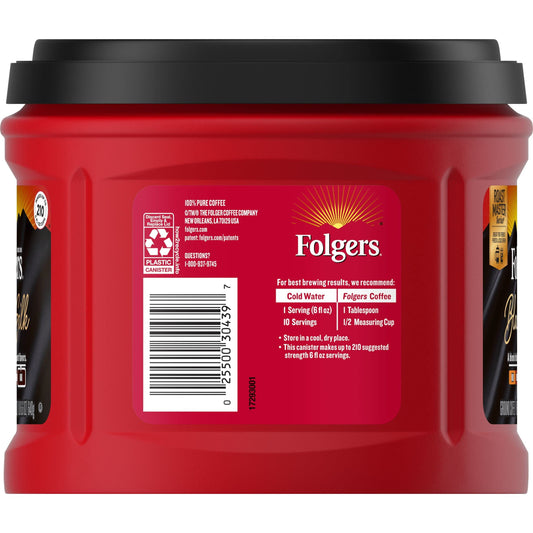 Folgers Black Silk Ground Coffee, Smooth Dark Roast Coffee, 9.6 Ounce Canister