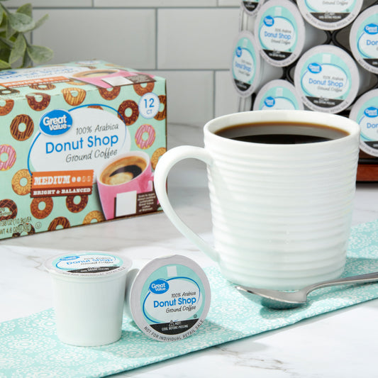 Great Value Donut Shop 100% Arabica Medium Roast Ground Coffee Pods, 12 Ct