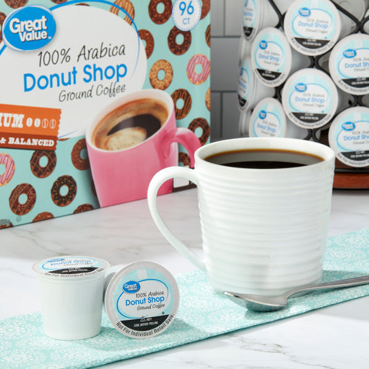 Great Value Donut Shop 100% Arabica Medium Roast Ground Coffee Pods, 96 Ct