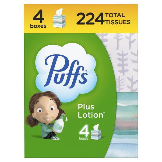 Puffs Plus Lotion Facial Tissue, Cube, 56 Tissues Per Box, 4 Count
