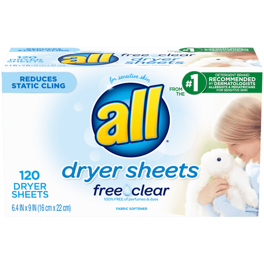 all Fabric Softener Dryer Sheets Free Clear for Sensitive Skin, 120 Count
