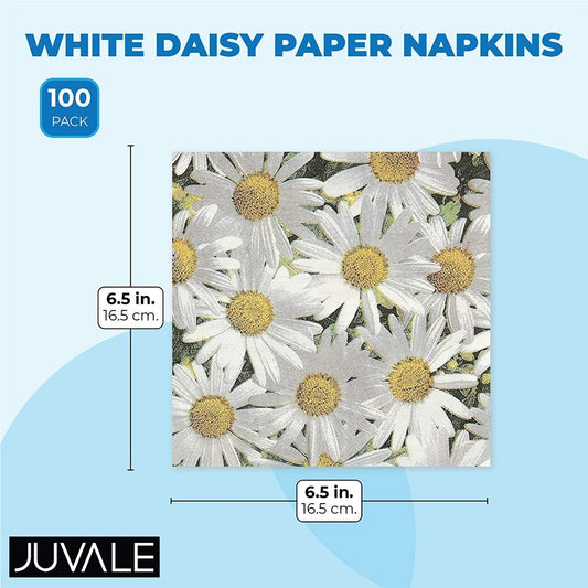 100 Pack Decorative Daisy Floral Themed Paper Napkins 6.5", for Weddings, Party Supplies