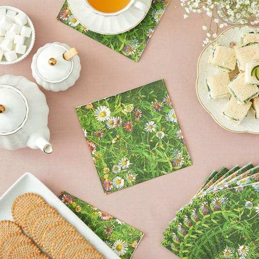 100 Pack Daisy Floral Paper Napkins, 6.5 Inches Party Supplies