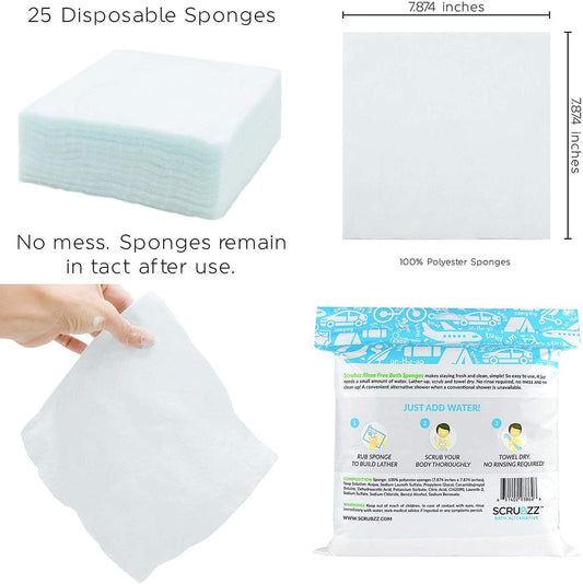 Scrubzz Rinse Free Bath Sponge, No Rinse Bath Wipes - 50 Count - 2 Pack