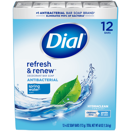 Dial Antibacterial Bar Soap, Refresh & Renew, Spring Water, 4 oz, 12 Bars