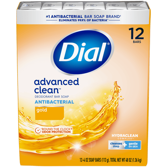 Dial Antibacterial Deodorant Bar Soap, Advanced Clean, Gold, 4 oz, 12 Bars