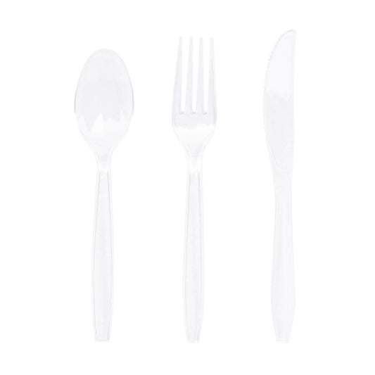 EDI Plastic Cutlery Set (Clear) - 32 Forks, 32 Knives, 32 Spoons